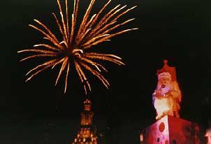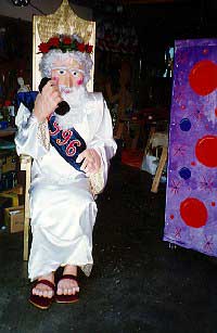 He sat in an eight foot high gold chair on top of a 25 foot high tower at the